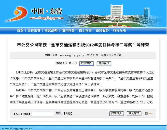 2013年2月28日東營市政府網站報道